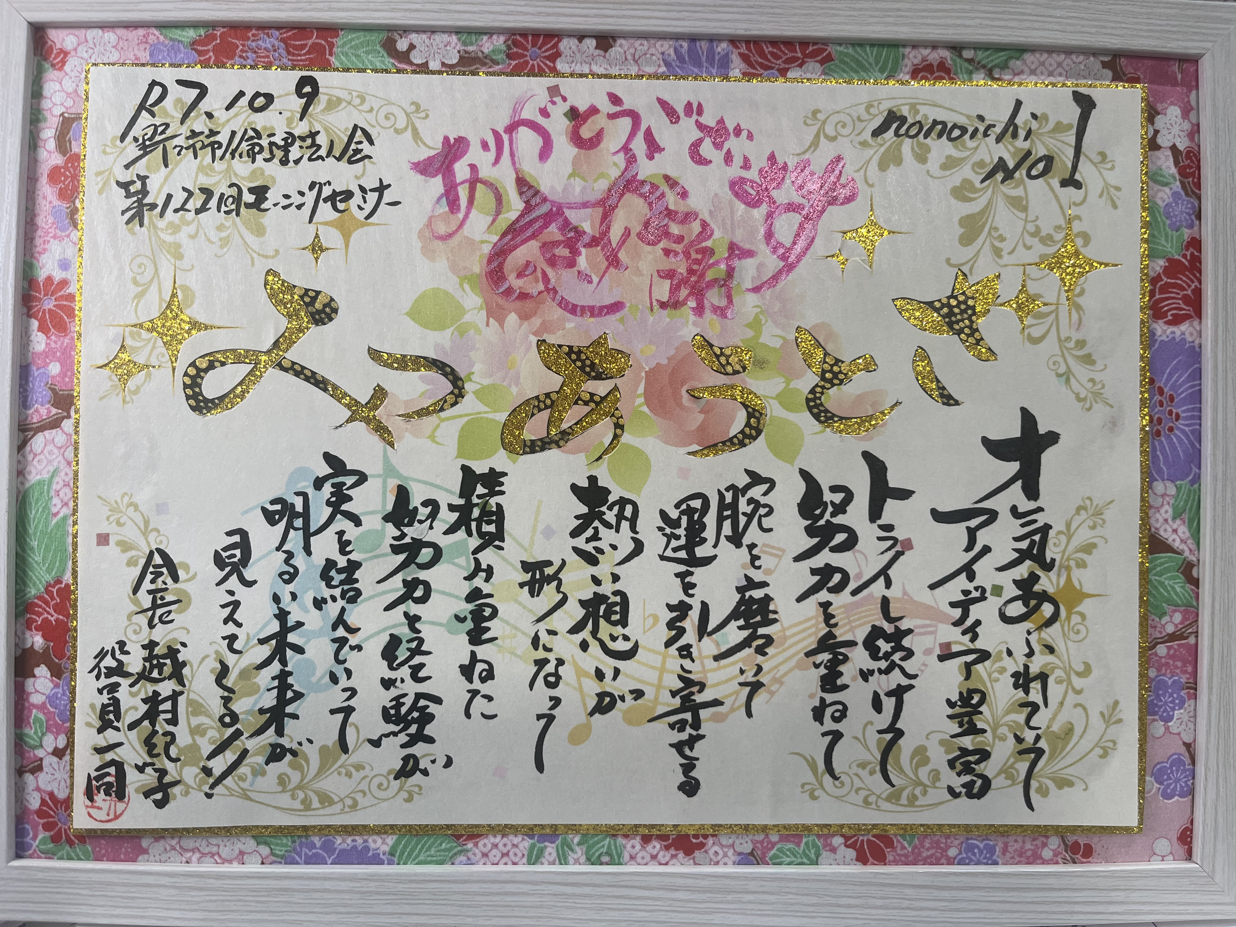 昨年は参加者の女性全員に感謝状をプレゼントさせて頂きました。今回も昨年参加してない方に作成してプレゼントしようかと思ったのですが、殆ど知らない方なので文章の書きようがなくて。行事が終わってから彼女の事を考えて出来たものです。