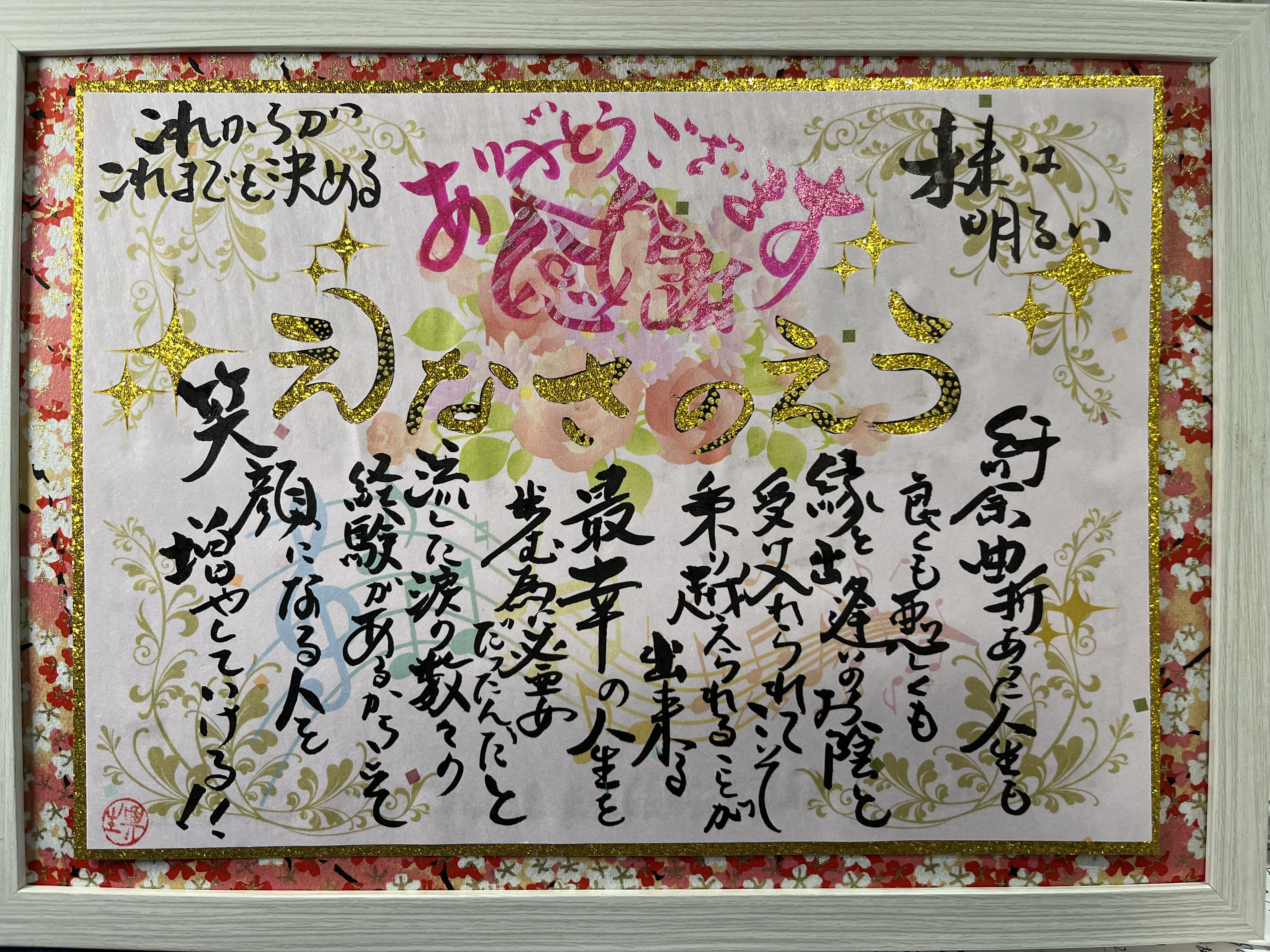 知り合いの女性に、私のも作ってと頼まれて、作成しました。彼女の過去の辛い話を思い出しました。色々あった人生だと思いますが、ある出会いから前向きに生きる事が出来る様になったとお聞きしていたのを思い出しました。
