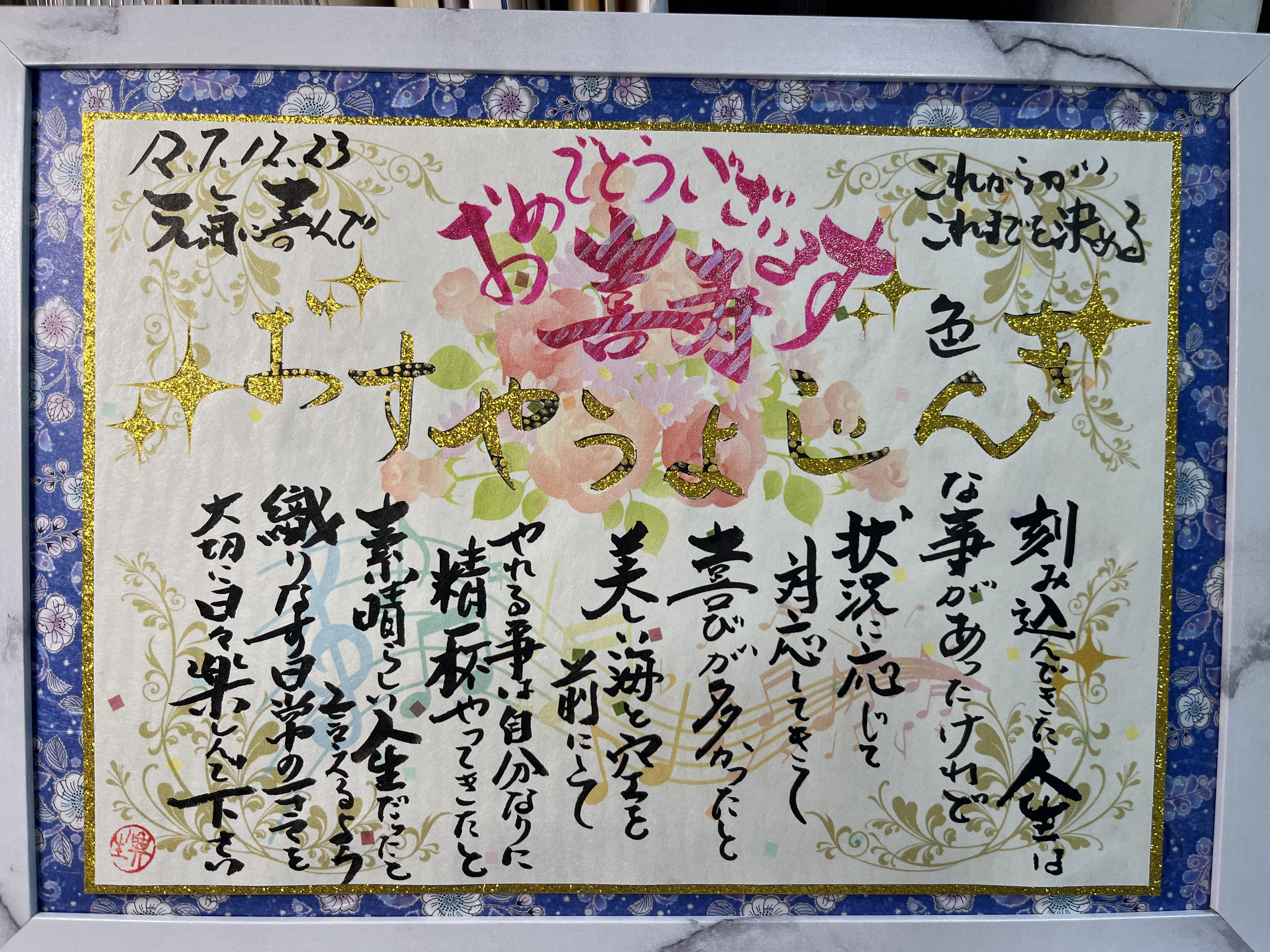 ハガキの友人が、12月23日に喜寿を迎えると書いてあったので、早速お祝いのメッセージを作ってみました。沖縄には行った事がないですが、海も空も青くて綺麗でしょうね。