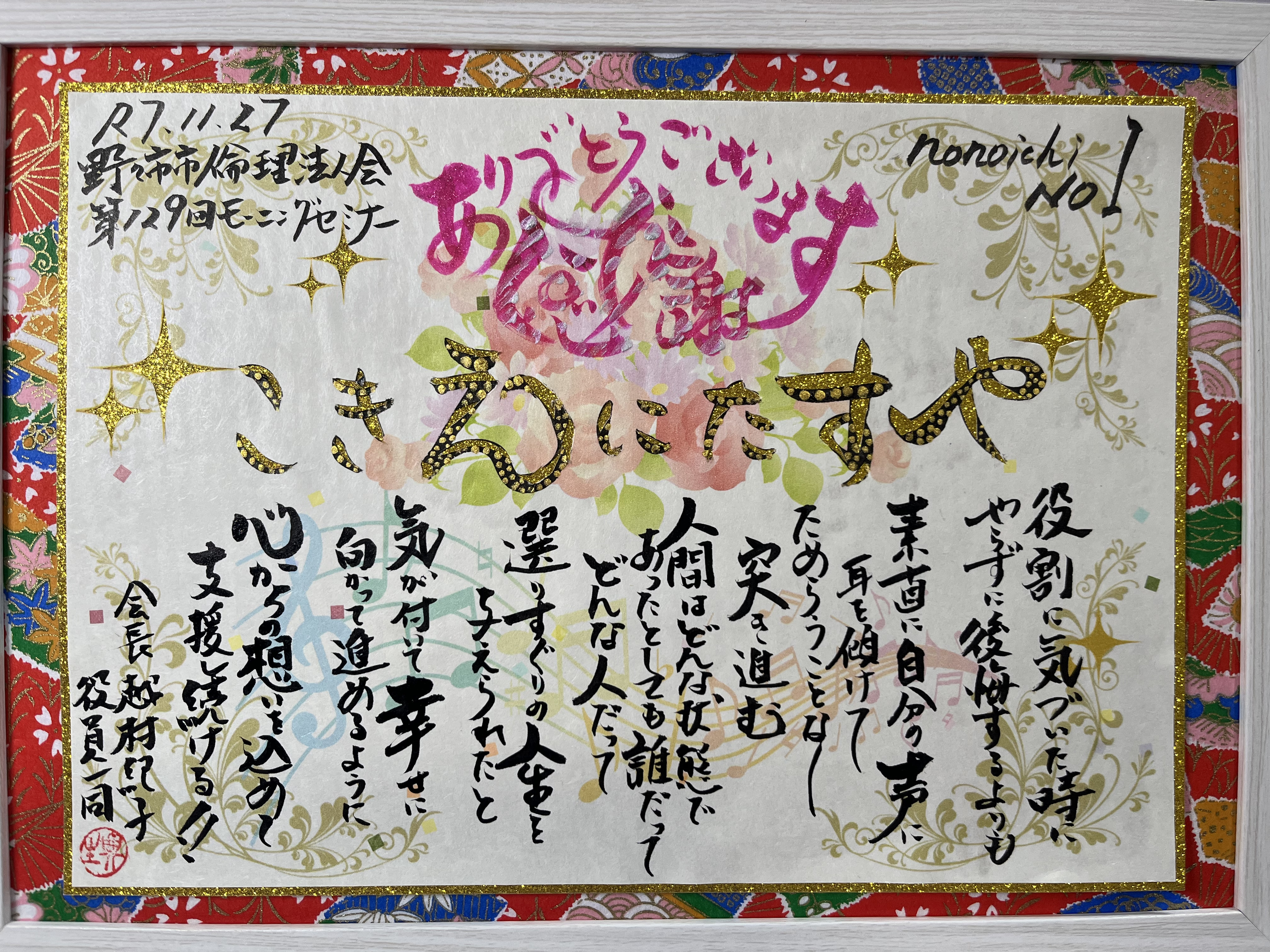 名前で作る感謝状・名前で作るメッセージ・名前で作る詩など、名前を使って文章を作成して額に入れてプレゼントに如何でしょうか?
